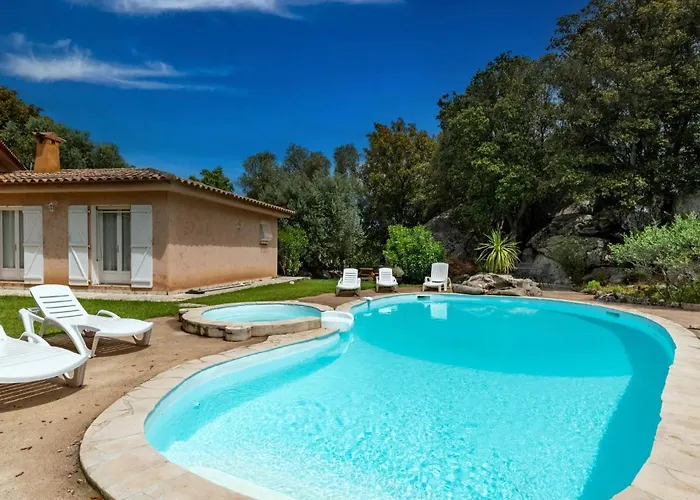 Tijdens hun verblijf in de woning kunnen gasten gebruik maken van een complete keuken uitgerust met een koelkast, een oven en keukengerei. De 2-badkamer villa bevindt zich ook op 25 km van de luchthaven Figari Sud-Corse. De villa heeft een terras om op te ontspannen na een drukke dag, samen met een seizoensgebonden buitenzwembad.